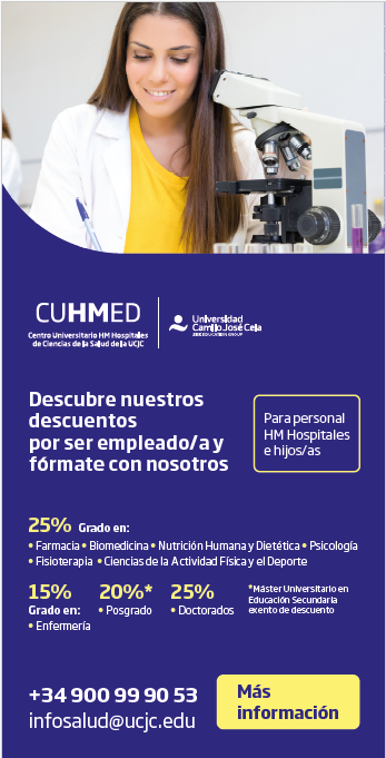 En CUHMED, el Centro Universitario de Ciencias de la Salud que impulsamos junto con la Universidad Camilo José Cela (UCJC), seguimos reforzando nuestra apuesta por la formación y el desarrollo del talento, ahora con beneficios exclusivos para los empleados del Grupo y sus familiares de primer grado.